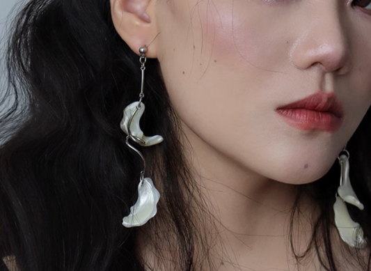 Seashell Pearl Earrings, Exaggerated, Asymmetrical, Gentle, Personalized Cloud Earrings with Silver Pins